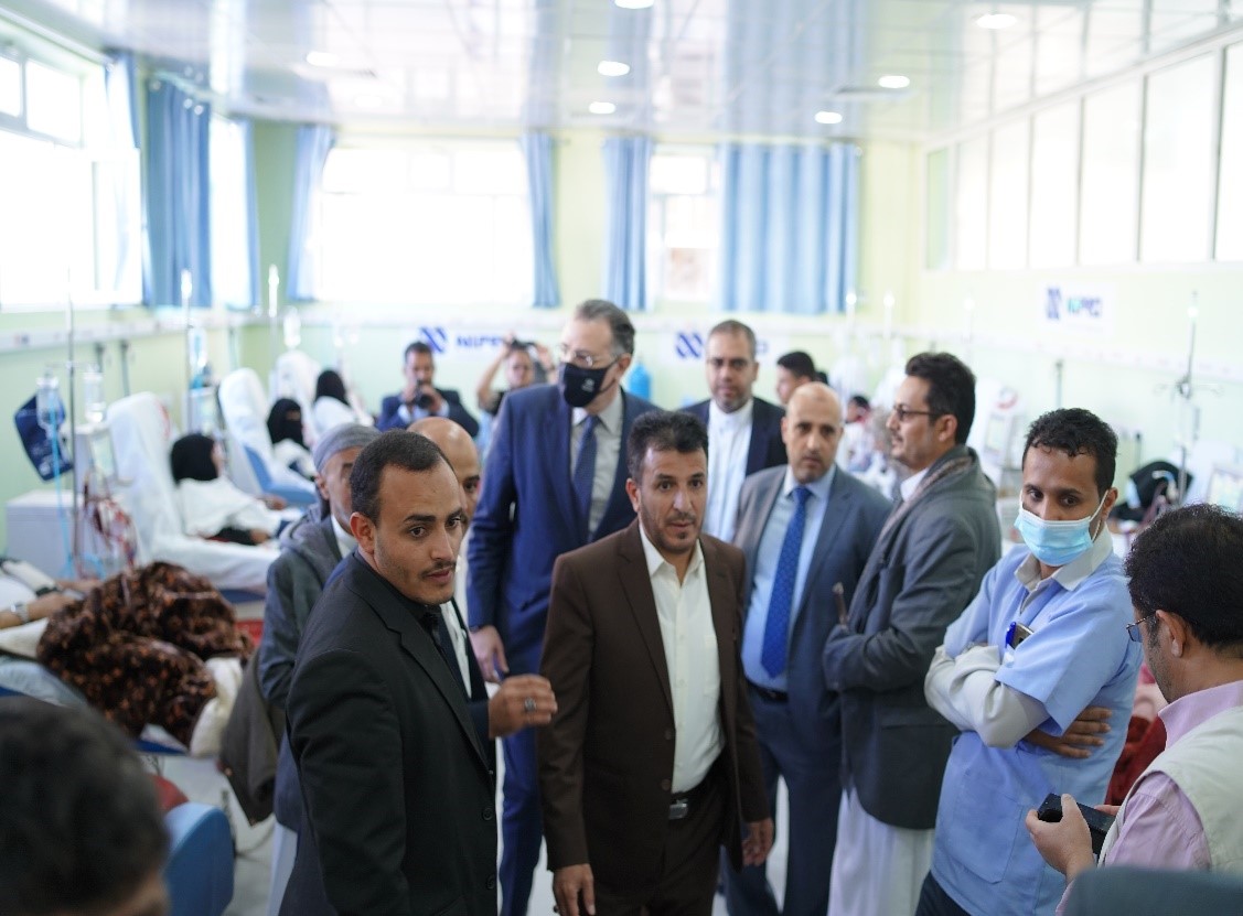 Minister of Public Health and Population Dr. Taha Al-Mutawakel and his accompanying delegation inaugurate the opening of the Al-Thawra General Hospital Authority - Sana'a, the new expansion of the dialysis center with a capacity of 36 devices